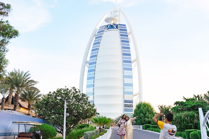 A continuació, navegarem per les vies navegables de Dubai en un vaixell tradicional Abra, passant per l'impressionant Burj Al Arab per obtenir unes fantàstiques instantànies de vacances.