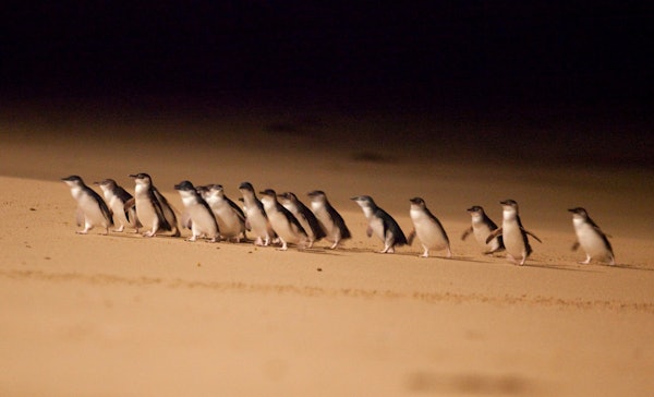 A Point Grant i The Nobbies, gaudiràs d'unes vistes impressionants de la badia de Westernport i de l'estret de Bass. Després ens dirigirem a l'esdeveniment principal, on just després de la nit, els pingüins més petits del món arriben a terra després de passar el dia pescant al mar. Quedaràs encantat quan aquests valents ocells surtin de la marea i passin davant dels teus ulls!
