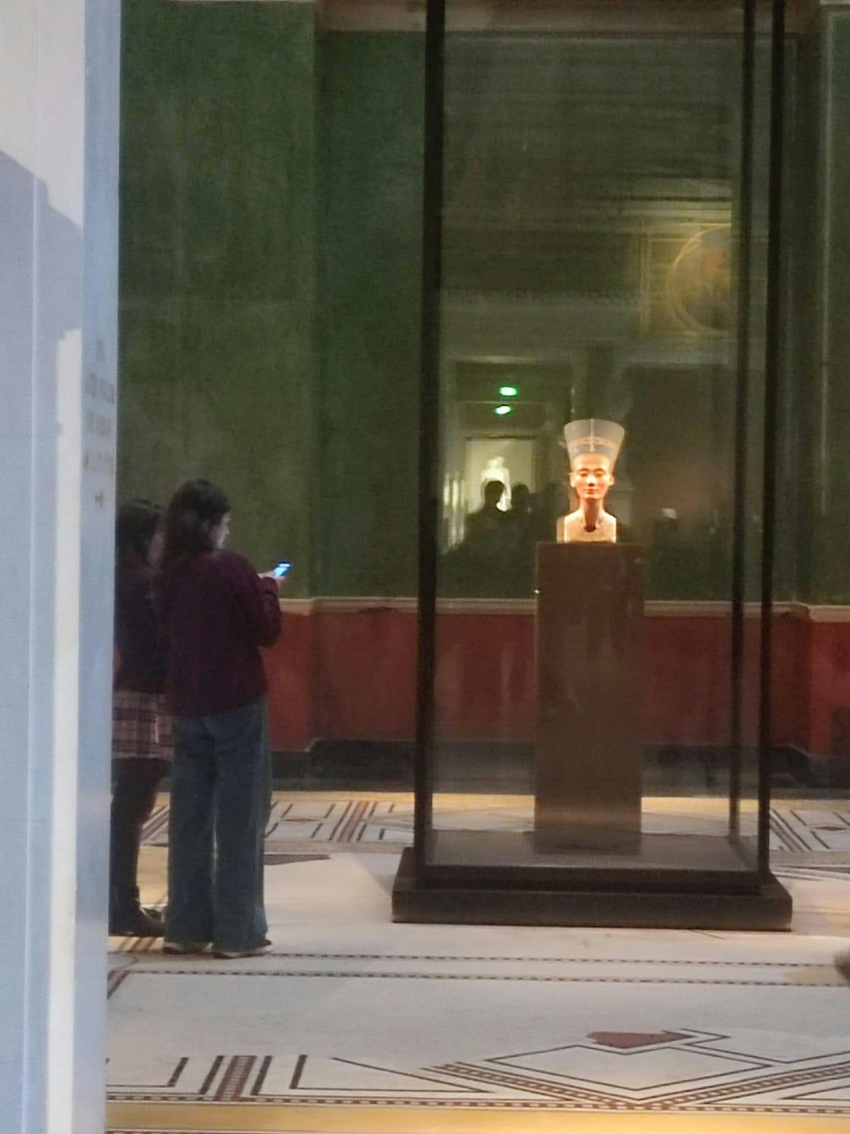 Avui podeu veure el Bust de Nefertiti a la Sala de la Cúpula Nord, a la segona planta. La mirada de Nefertiti recorre tot l'eix longitudinal de la casa i es troba amb la figura monumental del déu del sol Helios a l'altre costat, a la sala de la cúpula sud. Nefertiti és la "Reina del Sol" que, juntament amb el seu marit Akhenaton, adora la nova religió del sol. Helios és el déu del sol, la representació del qual, creada en època romana, mostra la "nova" imatge d'Egipte en l'antiguitat.