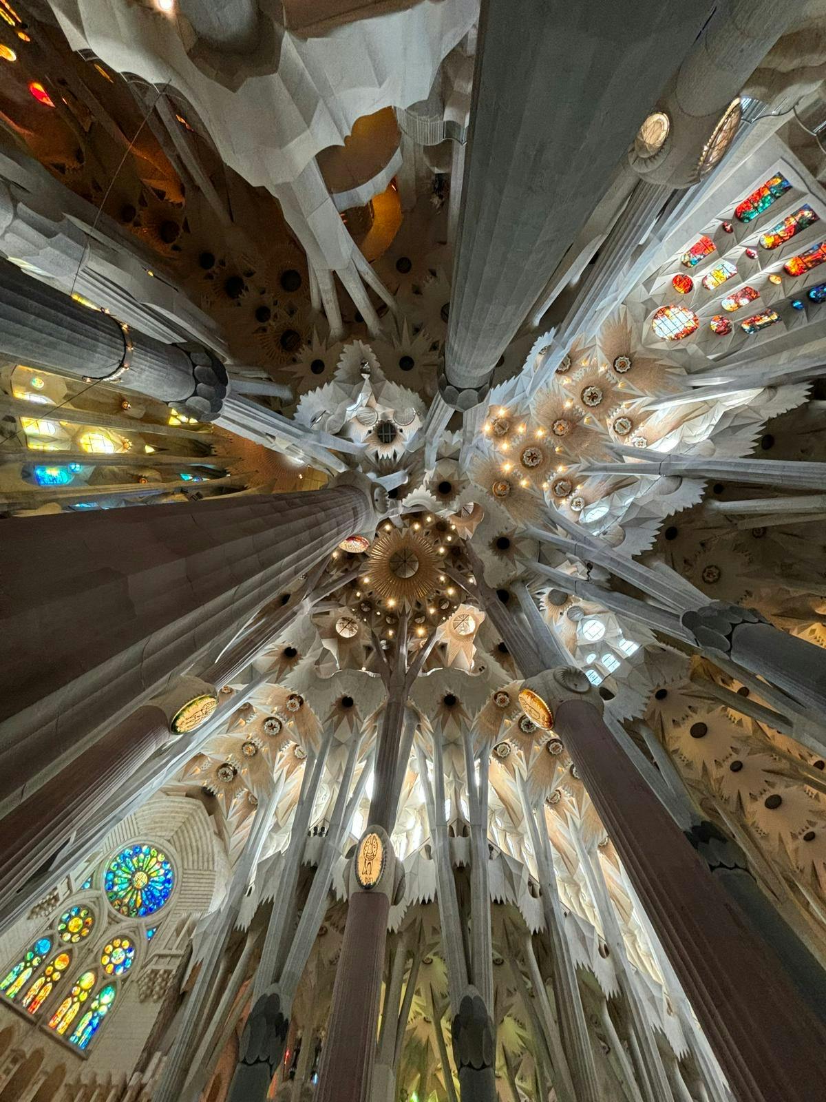 Techo del dosell dels arbres: A sobre, les columnes que suporten el pes del sostre de la basílica es ramifiquen com arbres en un dosell gegant, recordant als visitants l'escala insondable d'aquesta estructura sagrada.