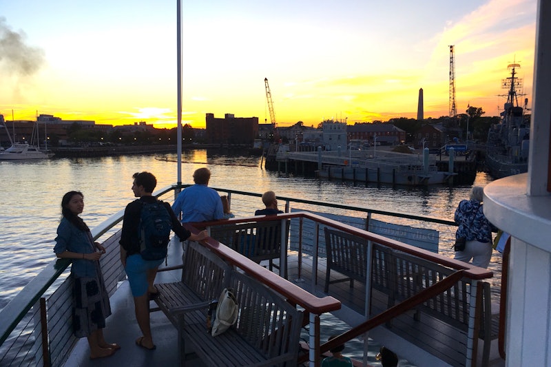 Plav se večerním přístavním vzduchem, popadni koktejl a předkrmy z baru a nech se naladit lehkou hudbou. O tom, na co se díváš, se dozvíš v komentářích k památkám bostonského přístavu, jako jsou památky, pevnosti, historické lodě, pozoruhodné budovy a mosty. Pozor na dělostřeleckou palbu při západu slunce!