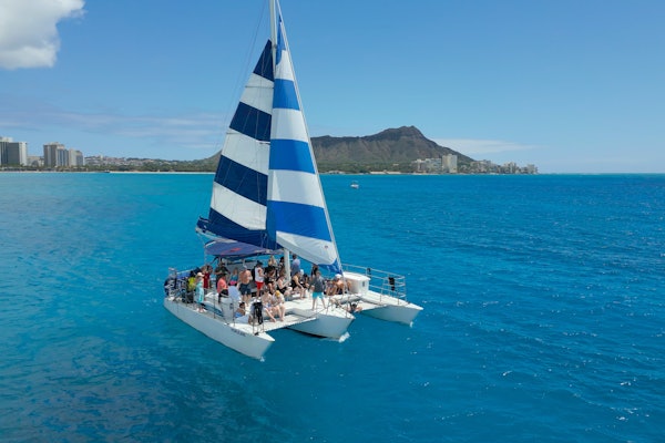 Vybavení pro šnorchlování a bezpečnostní vesty jsou k dispozici s certifikovanou posádkou, která nabízí vedení ve vodě. Po šnorchlování zvedni plachty a během zpáteční plavby si prohlédni Diamantovou hlavu a panorama Waikīkī. BYOB (doneste si vlastní nápoje) si můžete vychutnat na palubě s bezplatnou balenou vodou.