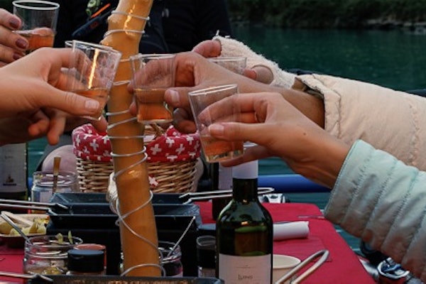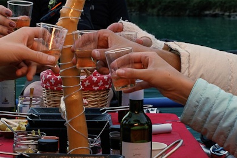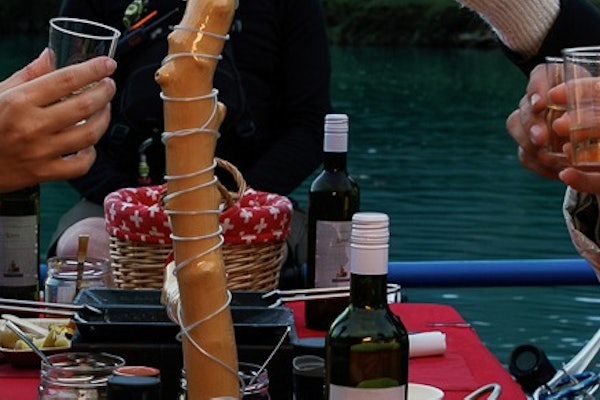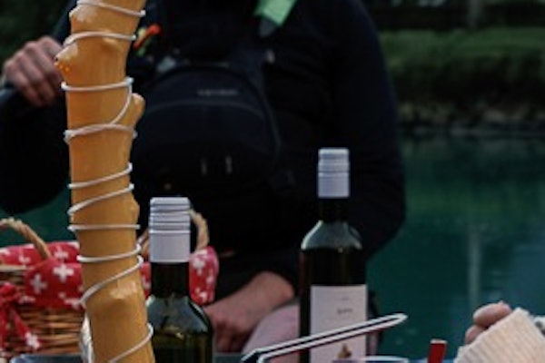 Sejdi se s průvodcem na určeném místě, obleč si záchrannou vestu a poslechni si bezpečnostní instruktáž. Nastup na raft a dozvíš se něco o raclette sýru.