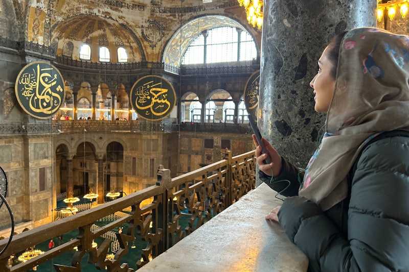 Tak začni návštěvou chrámu Hagia Sofia. Toto místo se změnilo z křesťanského kostela na mešitu a nyní slouží jako muzeum. Postav se pod jeho kopuli, prohlédni si mozaiky a seznam se s jeho dlouhou historií.
