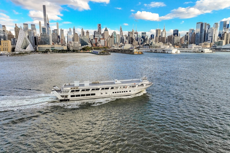 Prohlédni si západ slunce nad newyorským přístavem, užij si živou hudbu a prohlédni si památky, jako je Socha svobody a Brooklynský most.