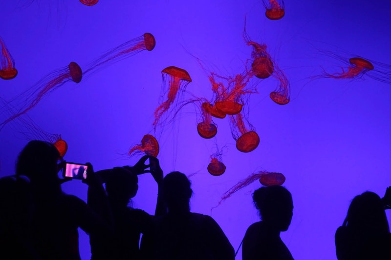 Navštiv Ray Bay a sleduj ladné pohyby rejnoků a medúzy unášené kolem v Planet Jellies.