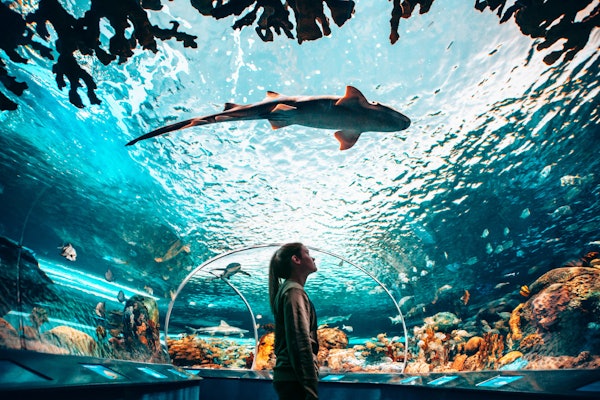 Projdi se skleněným mořským tunelem vedle pilounů a mořských želv. Nahlédni do jeskyní a všimni si mořských úhořů, kteří proplouvají nocí.