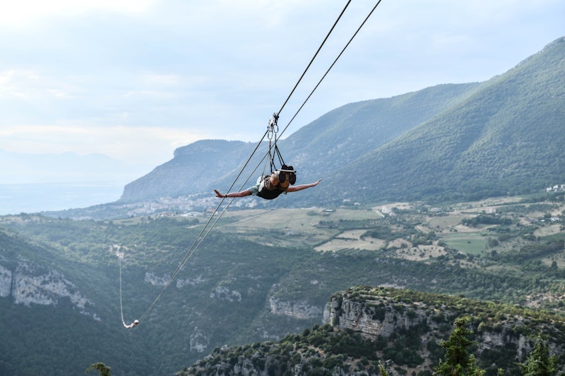Ve Volo se jezdí po laně zipline a pak je tu Cilento. Když kloužeš nad Trentinarou a pobřežním terénem a obdivuješ panoramatické výhledy na Tyrhénské moře, Salernský záliv a pobřeží Amalfi, ucítíš na kůži pohlazení mořského vánku.