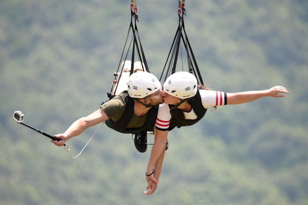 Díky anglicky a italsky mluvícímu průvodci, který tě povede (a možná i rozptýlí tvé obavy), je tvůj 40minutový zipline zážitek z Trentinary jedním z nejlepších způsobů, jak poznat region. Pokud chceš k jízdě přidat trochu romantiky, rozhodni se pro pár letů a při letu se vplížíš na polibek!