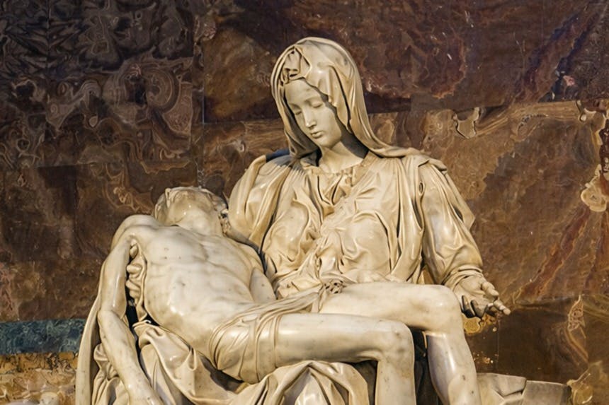Dnes je Pietà chráněna neprůstřelným sklem, ale stále můžete vidět syrové emoce a bezchybné zpracování, díky nimž se stala jednou z nejslavnějších soch na světě.
