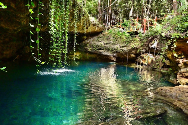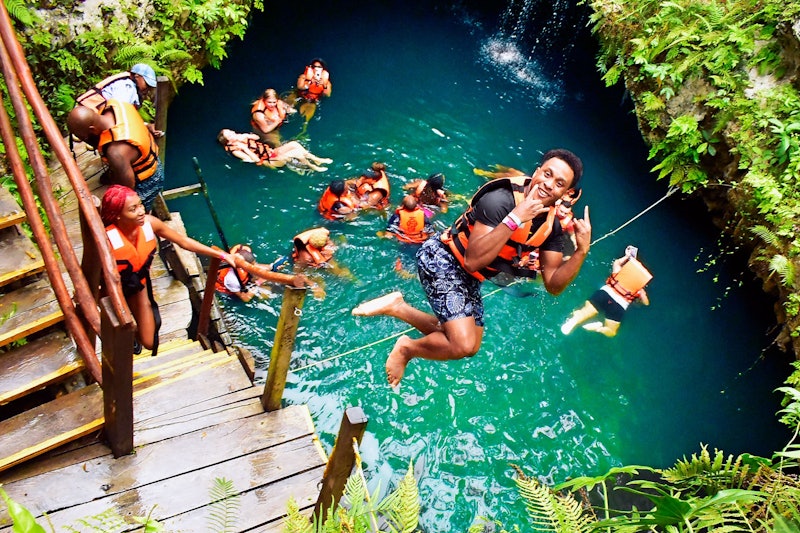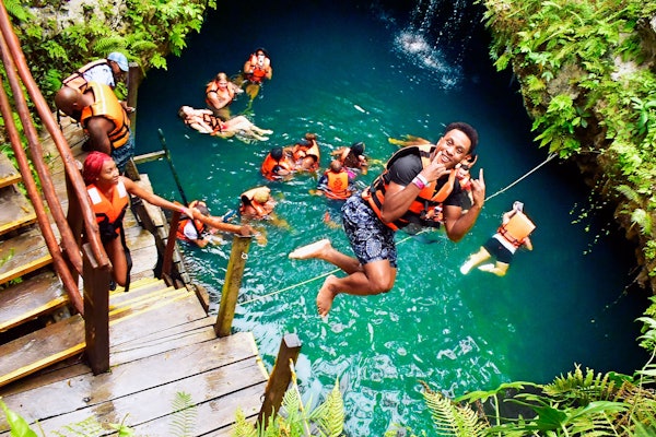 Svøm og udforsk hver cenote, og drag fordel af ziplinen eller hoppeplatformen, hvis det ønskes.