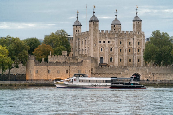 Undgå folkemængderne, og udforsk London med Uber Boats, den hurtigste på Themsen. Disse både afgår hvert 20. minut fra moler som Battersea Power Station og Barking Riverside.
