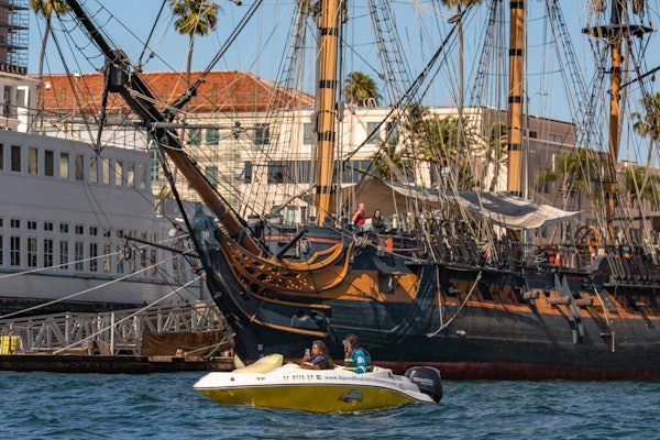 Din praktiserede guide vil ride foran dig i sin egen båd, hvilket betyder, at du kommer til at køre dig selv, meget, meget hurtigt, over San Diego havn i en cool 3-personers speedbåd.