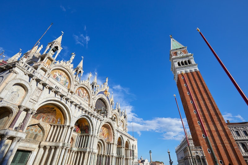 Først skal du gå ind i Markuskirken for at se gyldne mosaikker og marmordetaljer.