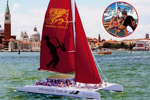 Oplev Venedig som aldrig før ved at spise din frokost på en sejlende katamaran med en betagende udsigt over byens skyline.