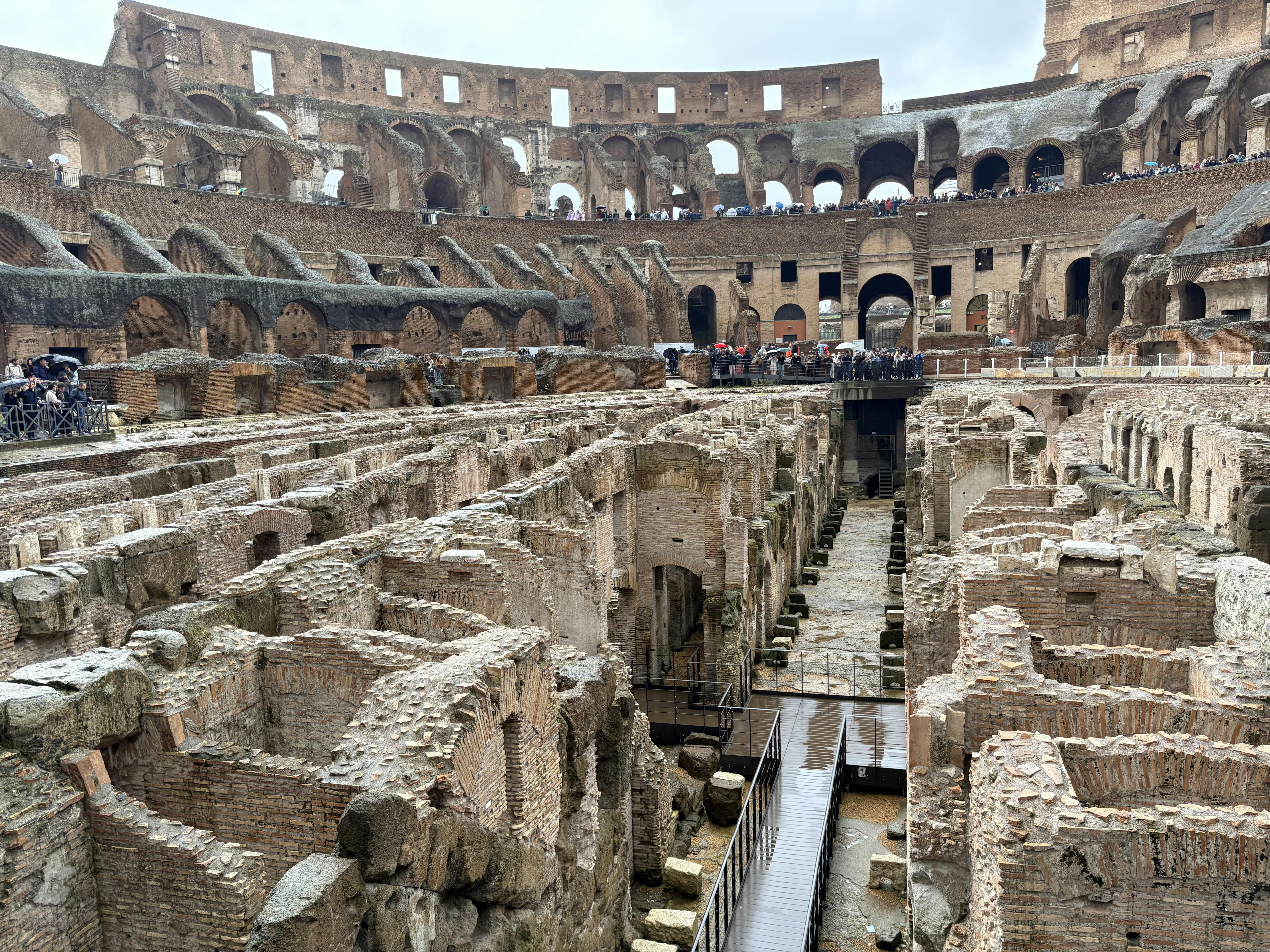 Undergrunden er den mest begrænsede del af stedet og den, der viser, hvordan bygningen faktisk fungerede. Du går gennem et to-niveau net af tunneler og kamre, hvor krigere, fanger og vilde dyr ventede før begivenhederne. Du kan se, hvor elevatorer engang løftede mennesker og bure op til arenaen, hvilket forvandlede showene til en tætkørende produktion.