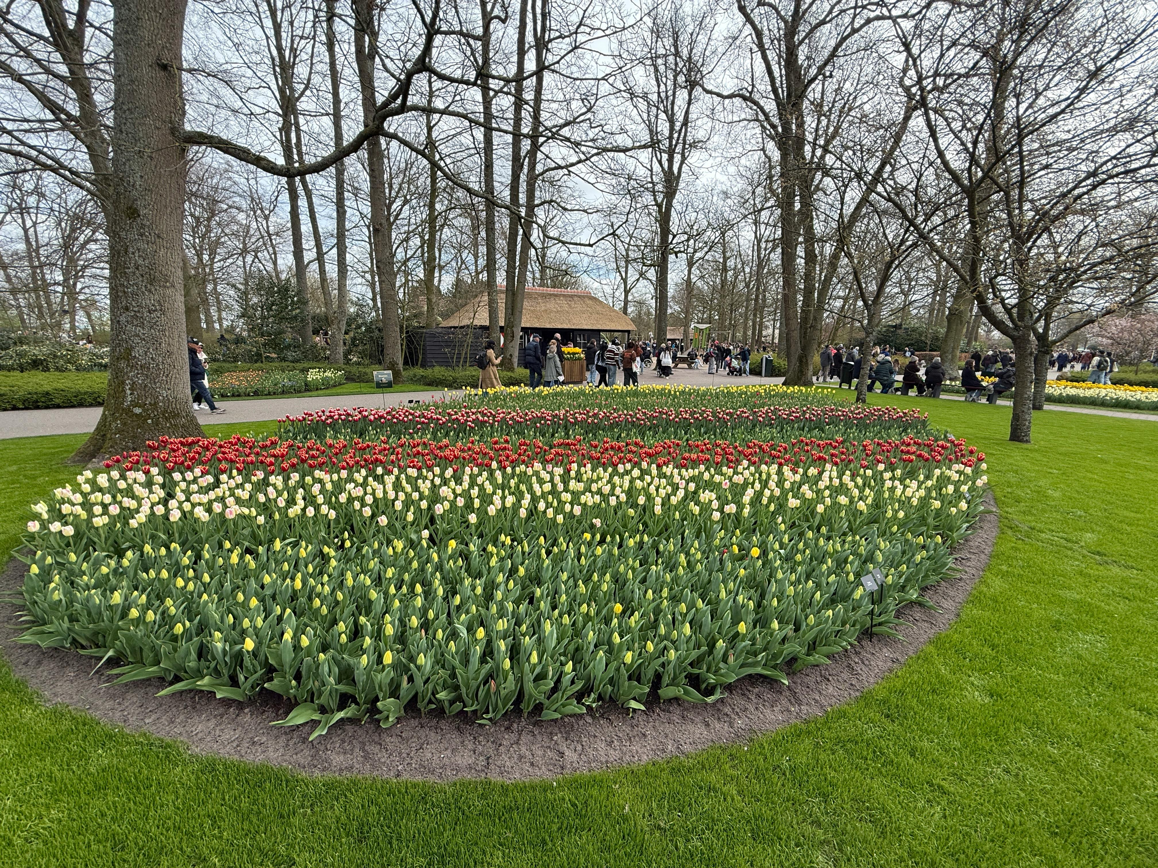 Det får du at se: Du vil gå forbi bølger af tulipaner spredt over parken, plantet i store blokke og flydende former. Omkring 7 millioner løg blomstrer her hver sæson. Hvert år kommer der også et nyt tema, så planteplanerne, farvekombinationerne og landskabsdesignet ændrer sig. Selvom du har været der før, vil parken ikke se ens ud.