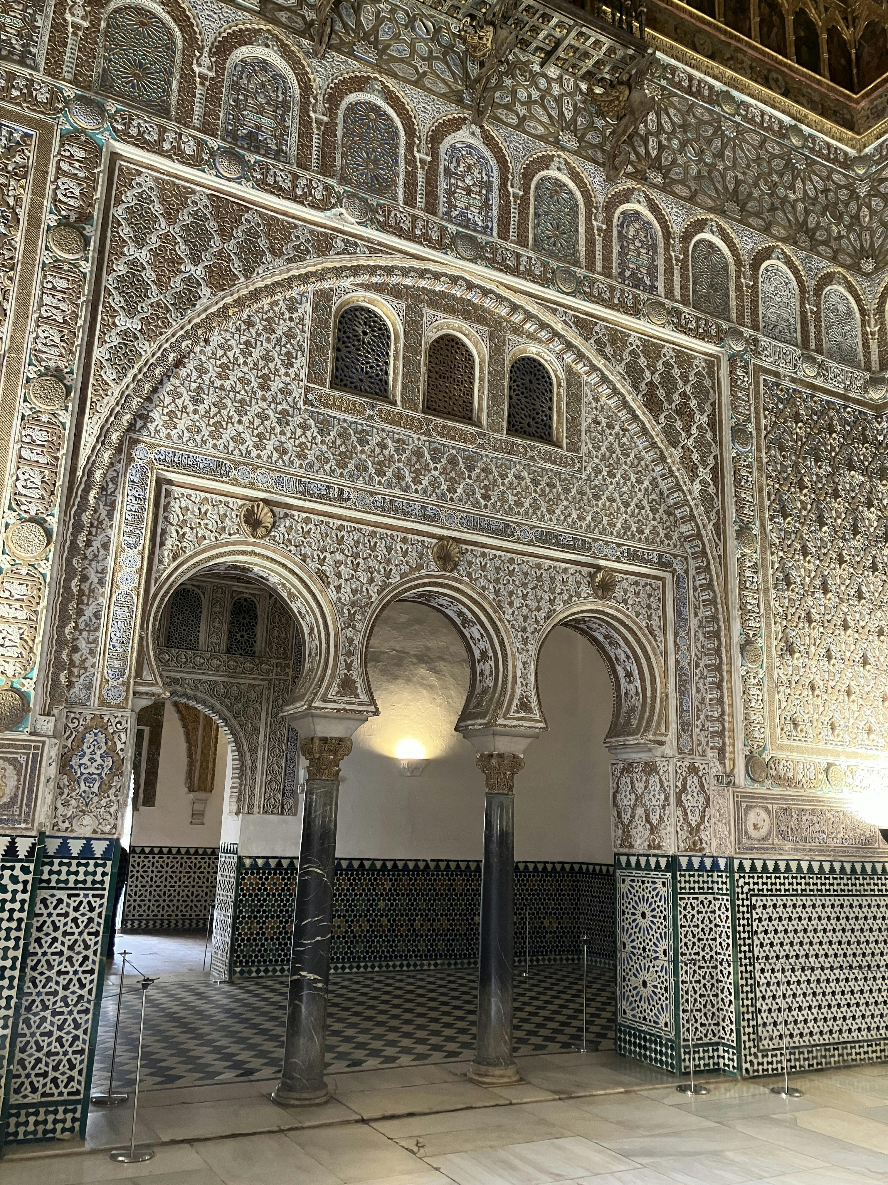 Blandt de mange udsmykkede detaljer i bygningen finder du krystal lamper, gobeliner og gyldne buegange