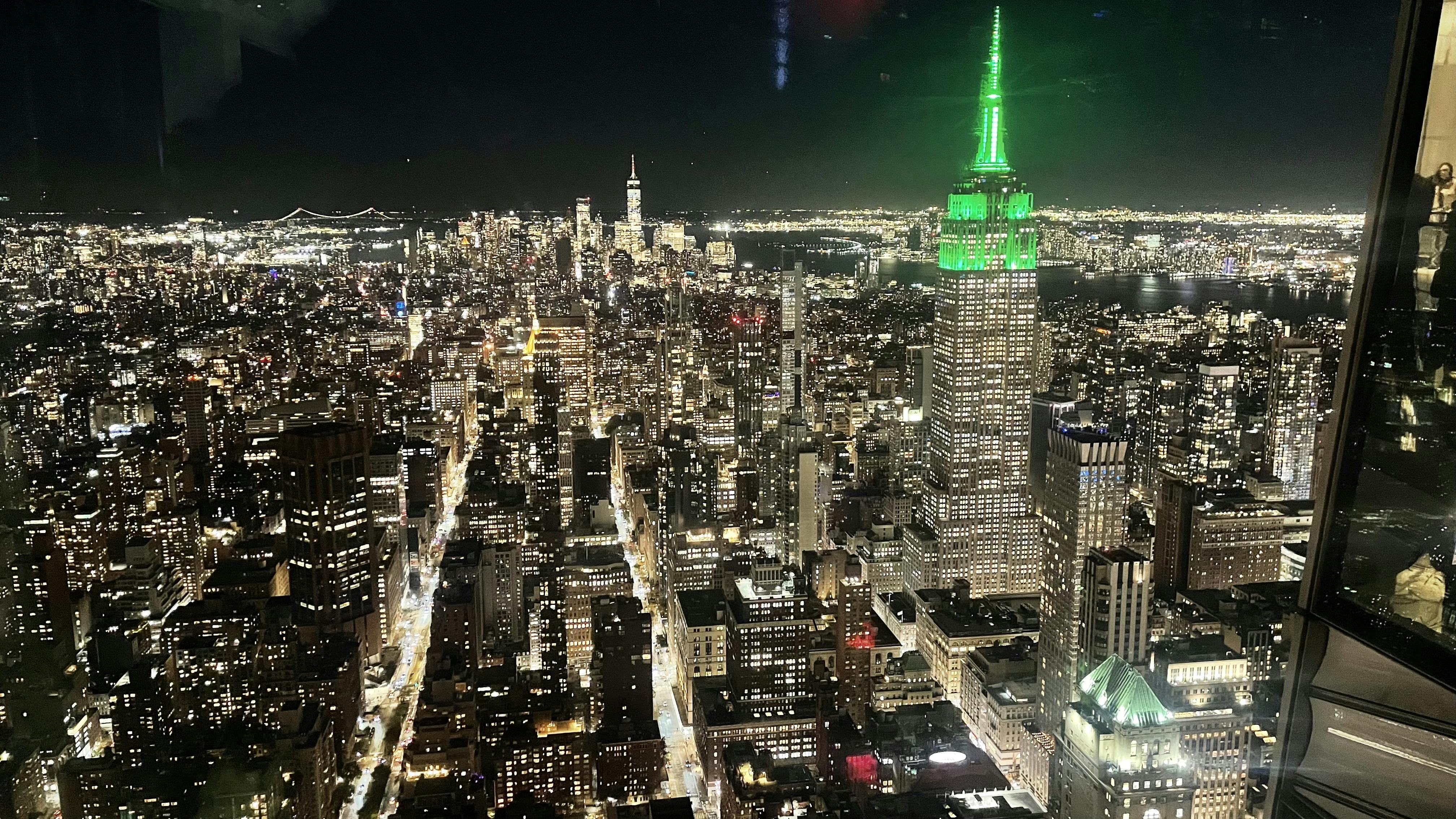 Besøg om dagen giver en klar udsigt over alle Manhattans store seværdigheder, herunder Empire State Building, One World Trade Center, Central Park og endda så langt som til Frihedsgudinden på en klar dag.