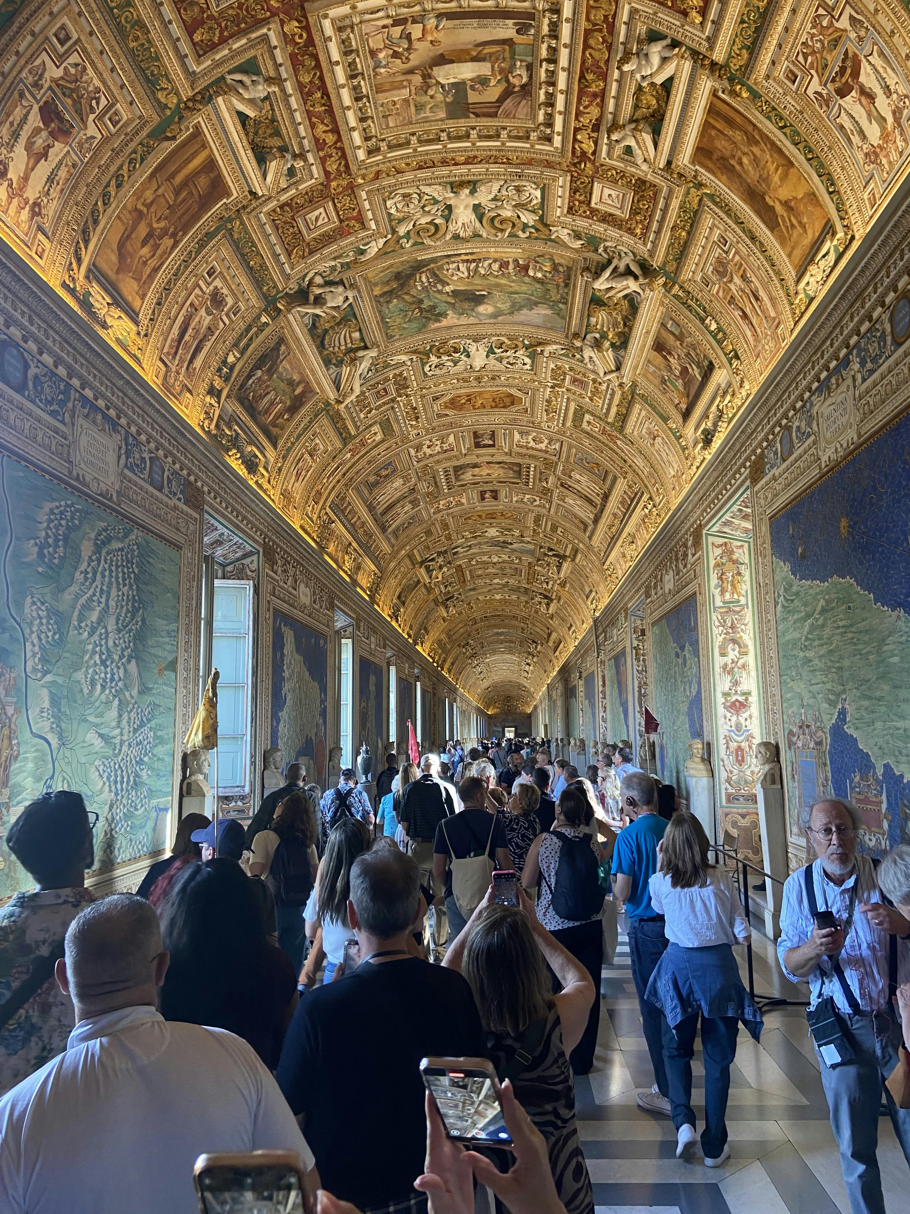 Kortgalleriet er udsmykket med et skinnende guldloft og viser 40 detaljerede topografiske kort over Italien, bestilt i det 16. århundrede. Hvert kort indeholder vigtige symboler og steder af interesse i hver italiensk region.