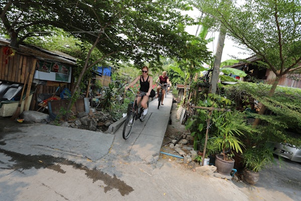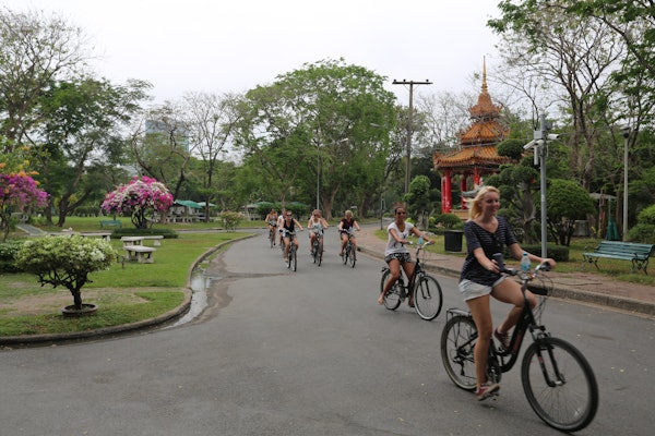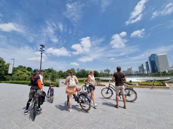 Erleben Sie das quirlige Bangkok mit dem Fahrrad! Die Bangkok City Culture Tour ist ein maßgeschneiderter Spaß auf zwei Rädern - Sie können sogar ein Fahrrad wählen, das zu Ihrer Körpergröße passt. Halten Sie unter der Führung Ihres Reiseleiters an einem beeindruckenden Tempel an, fahren Sie entlang des Eisenbahnfriedhofs, durch Hausbesetzersiedlungen und besuchen Sie den größten Tagesmarkt für frische Waren, Talad Klongtoey.
