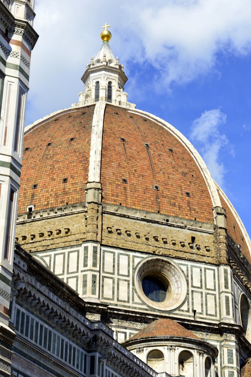 Seine achteckige Kuppel, ein Werk von Filippo Brunelleschi, ragt aus dem Stadtbild heraus. Die Bauarbeiten begannen im 13. Jahrhundert und kombinierten gotische, romanische und Renaissance-Stilrichtungen.