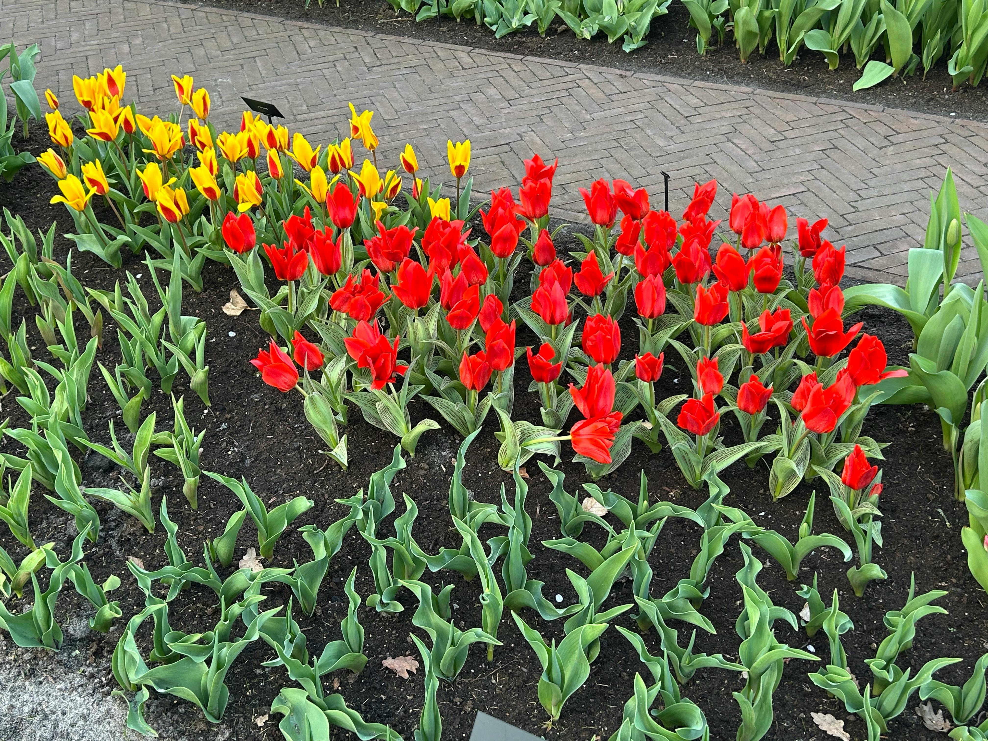 Hauptblütezeit: Normalerweise Mitte April, aber das hängt vom Wetter ab. In der Vorsaison blühen eher die frühen Zwiebeln. In der späteren Saison blühen eher die späten Tulpen.
