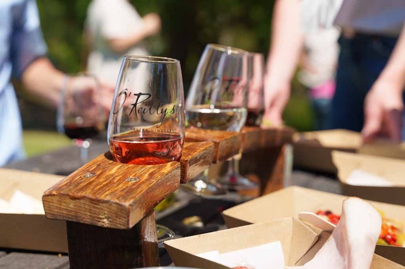 Wenn der Tag sanft in den Abend übergeht, lehnen Sie sich zurück und entspannen Sie sich inmitten der malerischen Weinberge des Canungra Valley. Genießen Sie bei einem Glas Sekt den Moment und die friedliche Umgebung, während Sie sich von diesem außergewöhnlichen Tag verabschieden.