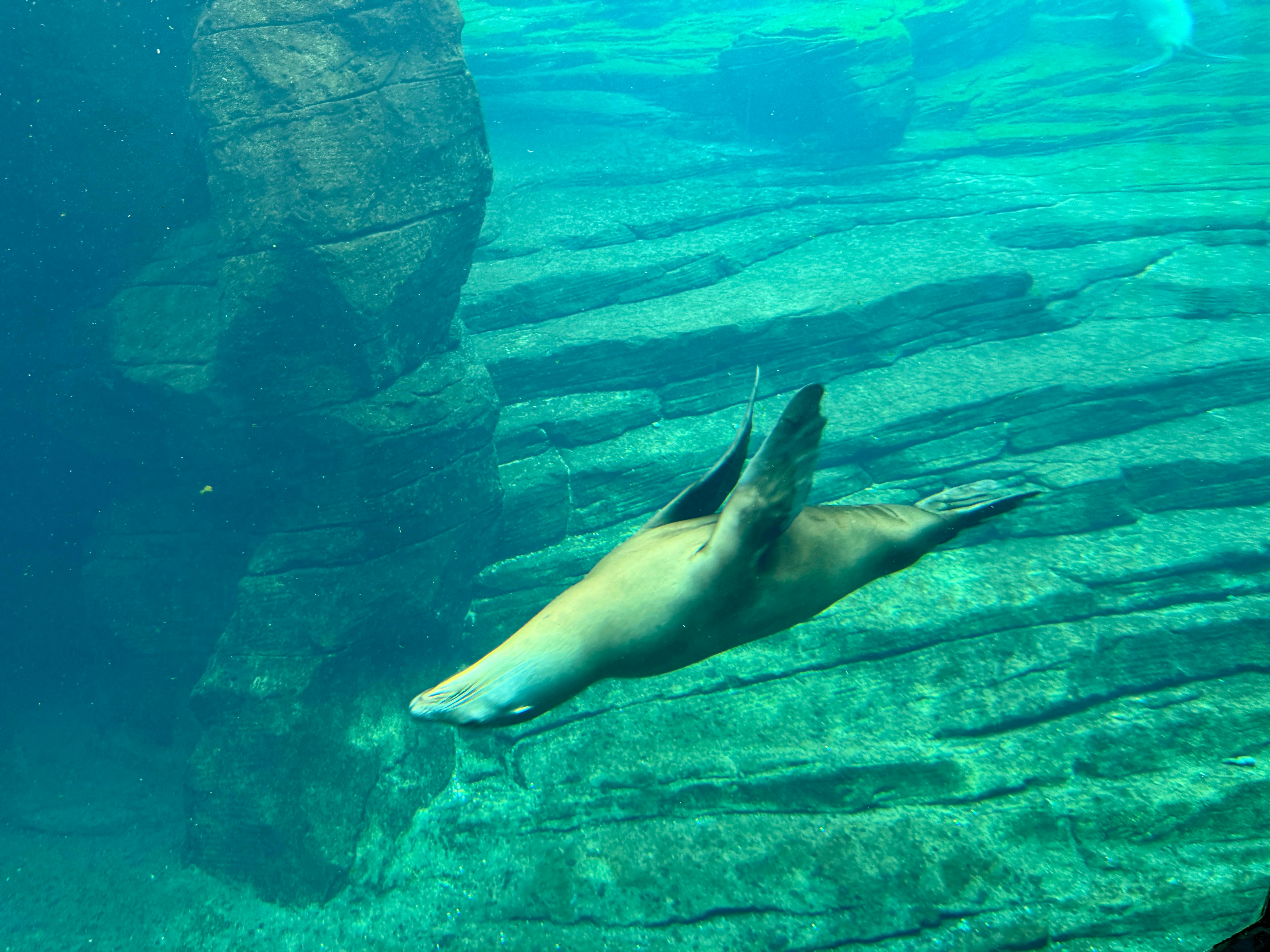 Es war wunderschön. Das riesige Aquarium mit den riesigen Fischen. Im nächsten Bereich Krokodile und Seelöwen. Dazu Animationen für Kinder.