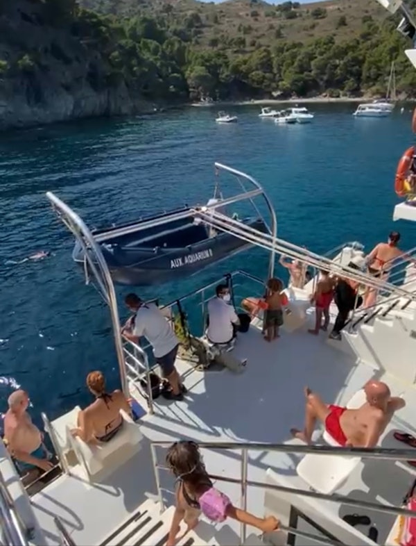 Bei dieser Bootsfahrt von Roses oder Santa Margarita zum Naturpark Cap de Creus erleben Sie die Natur hautnah, ohne auf Komfort zu verzichten. Schwimmen Sie in einer wunderschönen Bucht in der Bucht von Montjoi und lassen Sie sich von dem türkisfarbenen Wasser überraschen. Der Katamaran AQUARIUM II verfügt über spezielle Aussichtskapseln, von denen aus Sie den Meeresboden beobachten können, sowie über zwei große Rutschen, die Ihr 40-minütiges Bad zu einem unvergesslichen Erlebnis machen.