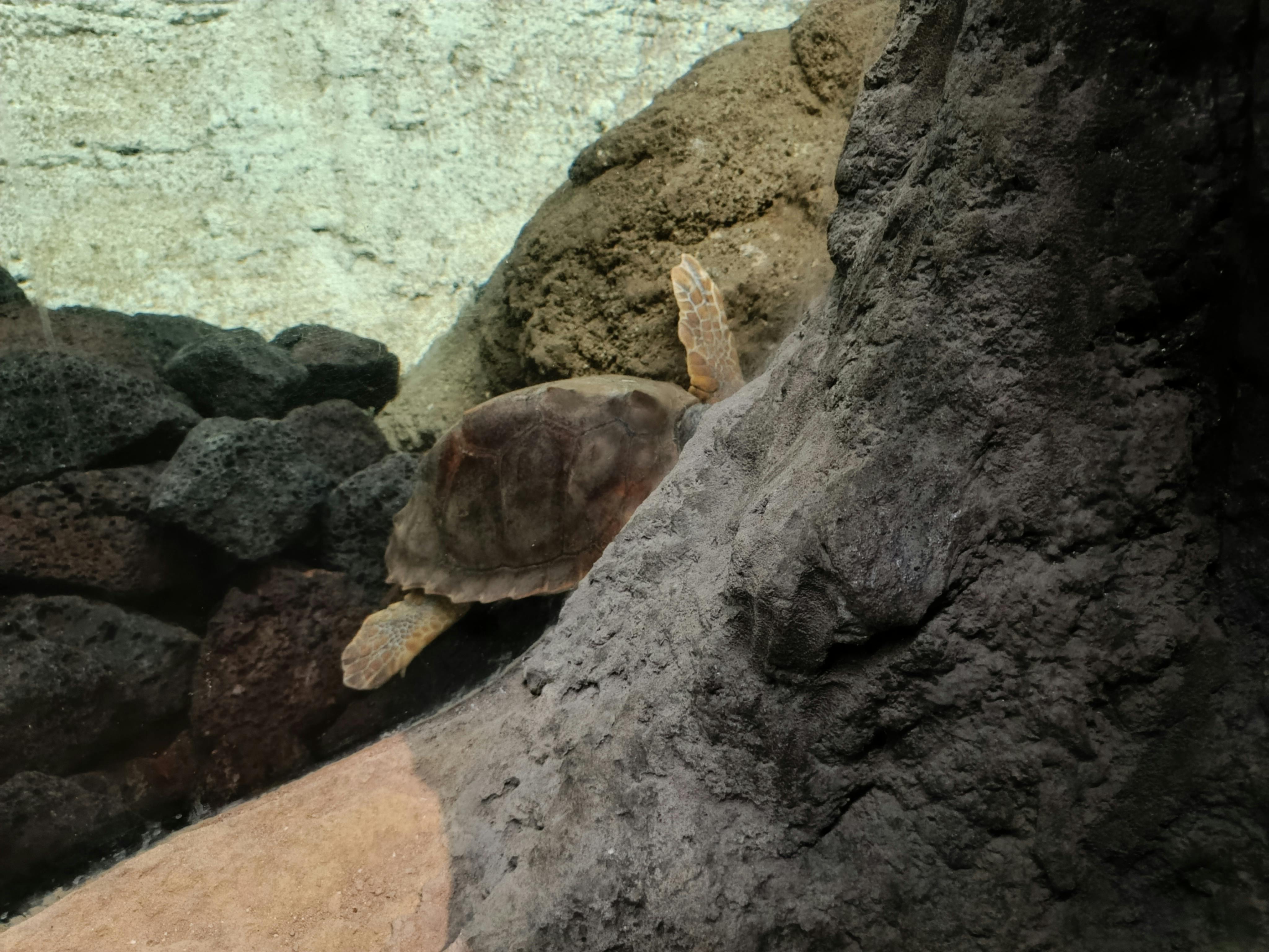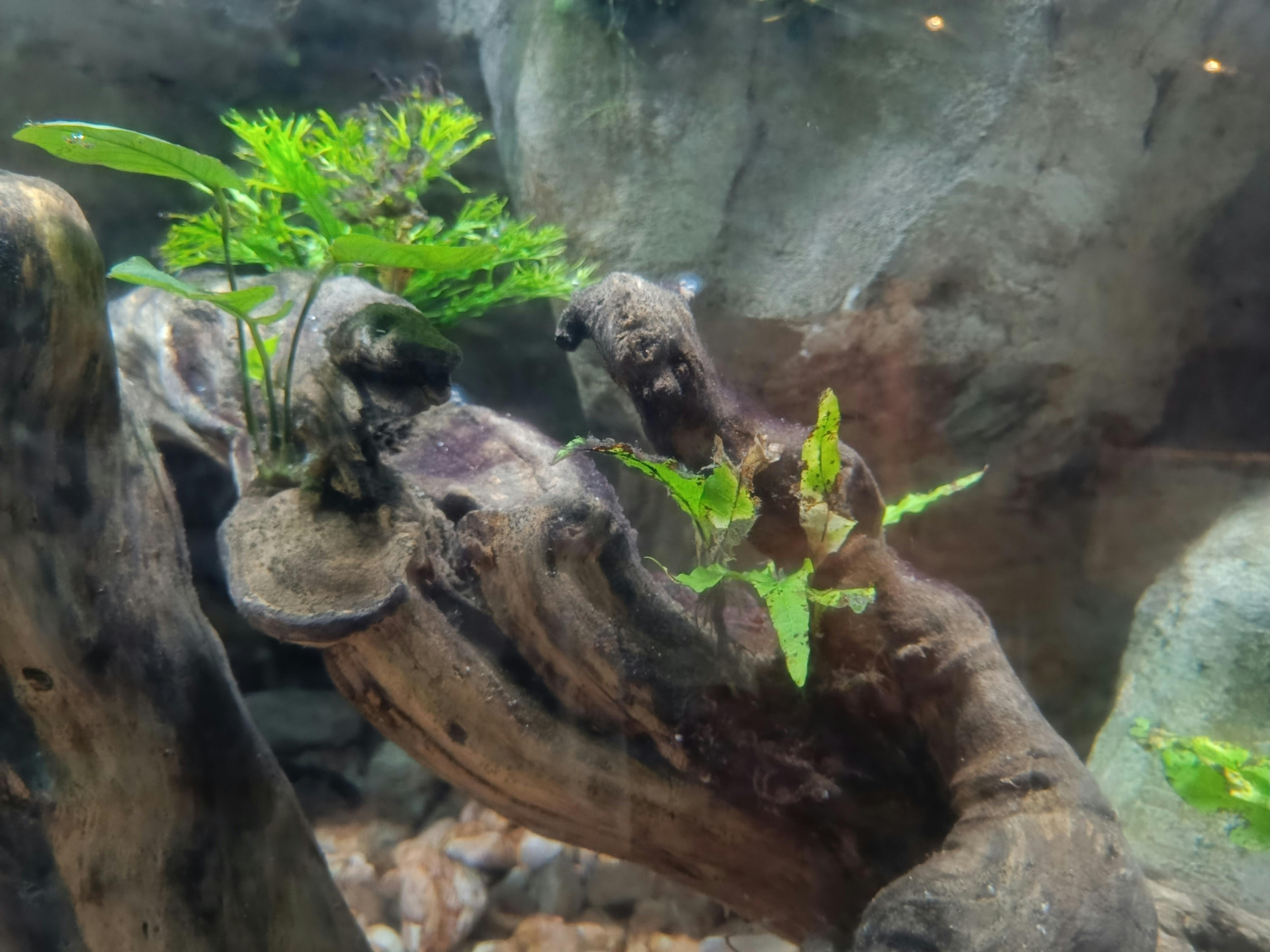 Kleines schönes Aquarium. Die dreiflossige Schildkröte ist das Highlight.
