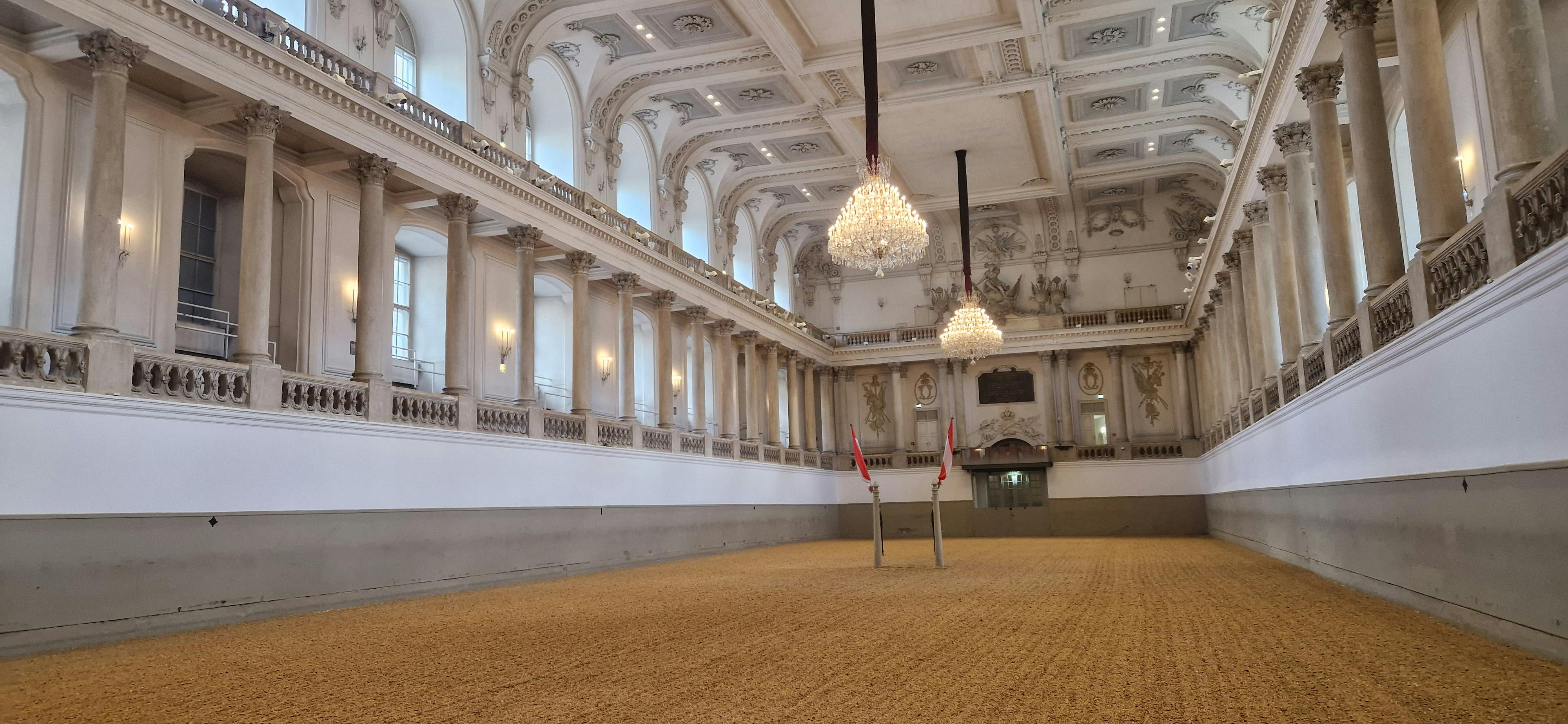 Dieses wunderschöne Gebäude ist seit mehr als 450 Jahren ein Trainingszentrum für Pferde. Die Gäste können eintreten und diesen erstaunlichen Pferden dabei zusehen, wie sie die Seile und Zügel lernen, um sich auf ihre Auftritte in der Winterreitschule in der Hofburg vorzubereiten.