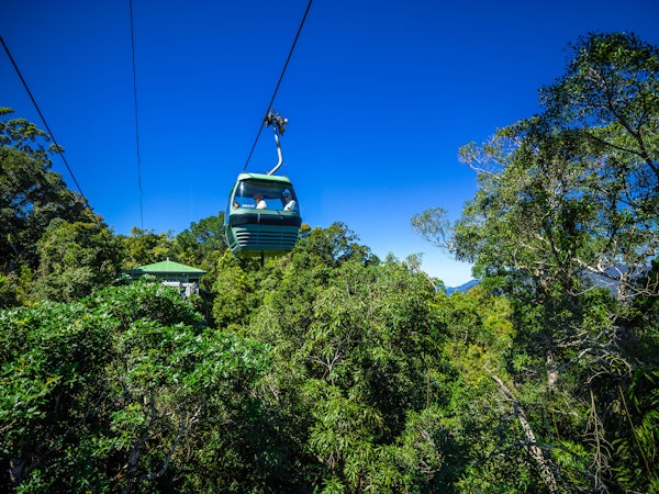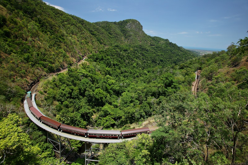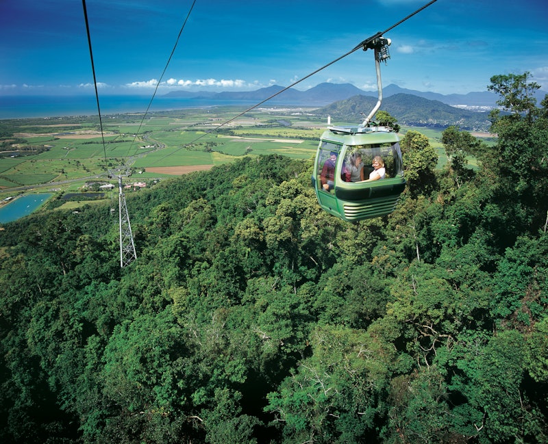 Πρώτα απ' όλα, πετάξτε πάνω από το Εθνικό Πάρκο Barron Gorge με το Skyrail Rainforest Cableway προς την Kuranda. Αφού φτάσετε στην πόλη, μπορείτε να εξερευνήσετε τα αξιοθέατά της - όπως το Καταφύγιο Αυστραλιανών Πεταλούδων και το Πάρκο της Φύσης Rainforestation.