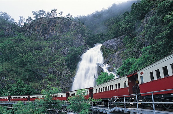 Πριν επιστρέψετε στο σπίτι σας, θα κάνετε μια βόλτα με τον ιστορικό γραφικό σιδηρόδρομο Kuranda Scenic Railway, ένα από τα πιο μοναδικά σιδηροδρομικά ταξίδια της Αυστραλίας! Αφού περάσετε τους καταρράκτες και φτάσετε στο σταθμό Freshwater, ένα λεωφορείο θα σας επιστρέψει στο αυτοκίνητό σας.