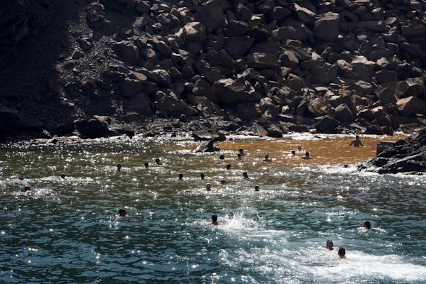 Το ταξίδι συνεχίζεται με κατεύθυνση το νησί της Παλαιάς Καμένης, γνωστό για τις ιαματικές του πηγές. Φωλιασμένο στον απάνεμο κόλπο του Αγίου Νικολάου, το νερό διατηρεί μια καταπραϋντική θερμοκρασία 30-35 βαθμών Κελσίου, αναμειγνύοντας συνεχώς με το δροσιστικό θαλασσινό νερό. Το σκάφος παραμένει για ένα απολαυστικό 30λεπτο, άφθονο χρόνο για να βυθιστείτε σε αυτή τη μοναδική εμπειρία. Δεν υπάρχει παραλία, αλλά η συγκίνηση προέρχεται από την κατάβαση μιας σκάλας στη ζεστή θάλασσα και το κολύμπι περίπου 30 μέτρα στην καρδιά του κόλπου, όπου σας περιμένουν χαλαρωτικά λασπόλουτρα.