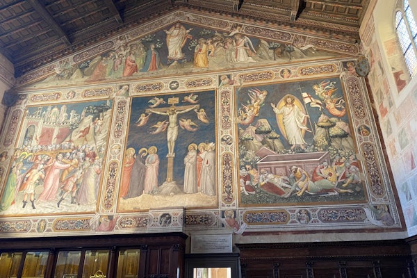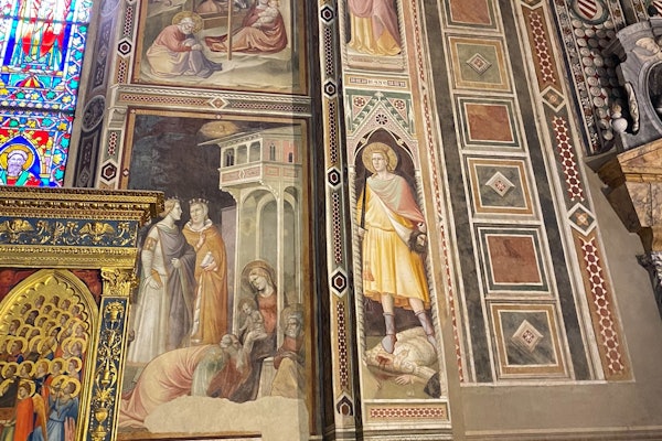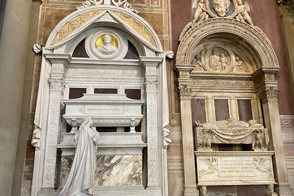Ο ειδικός ξεναγός αποκαλύπτει τα αρχιτεκτονικά χαρακτηριστικά του γοτθικού στυλ. Θαυμάστε τις τοιχογραφίες του Giotto, το παρεκκλήσι Bardi, το παρεκκλήσι των Μεδίκων, το παρεκκλήσι Pazzi και άλλα αριστουργήματα των Donatello, Brunelleschi και πολλών άλλων σημαντικών ζωγράφων και γλυπτών της Αναγέννησης.