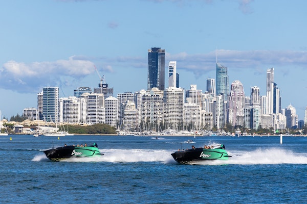 Βόλτα με Arro Jet Boats στη Χρυσή Ακτή για μια περιπέτεια σε νερό υψηλής ταχύτητας. Ταξιδέψτε με το λεωφορείο Arro από το Surfers Paradise στον τερματικό σταθμό κρουαζιέρας Sea World. Άφιξη και προετοιμασία με σωσίβιο και προαιρετικό μπουφάν ψεκασμού. Τραβήξτε μια γρήγορη φωτογραφία πριν επιβιβαστείτε στο σκάφος.