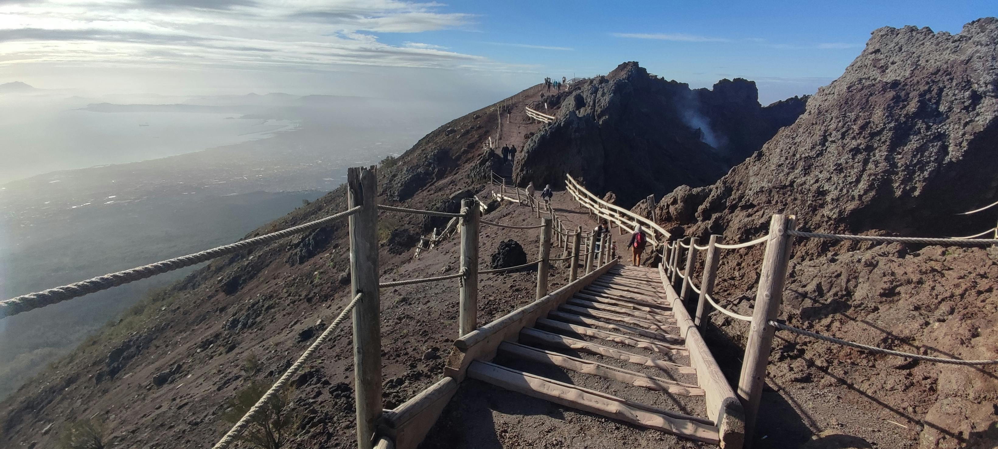Όταν φτάσετε στο χείλος του κρατήρα, αυτό είναι το μεγάλο σας βραβείο. Κοιτάξτε προς κάθε κατεύθυνση και δείτε την πόλη της Νάπολης και τον ιστορικό χώρο της Πομπηίας, παγωμένο στον χρόνο.