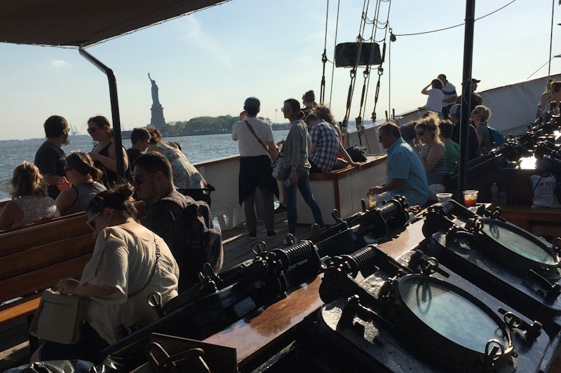 Χαλαρώστε με ένα κοκτέιλ απολαμβάνοντας από κοντά τη θέα στο Άγαλμα της Ελευθερίας, το Ellis Island και τον ορίζοντα του Μανχάταν με μια περιήγηση με βάρκα στο λιμάνι της Νέας Υόρκης.