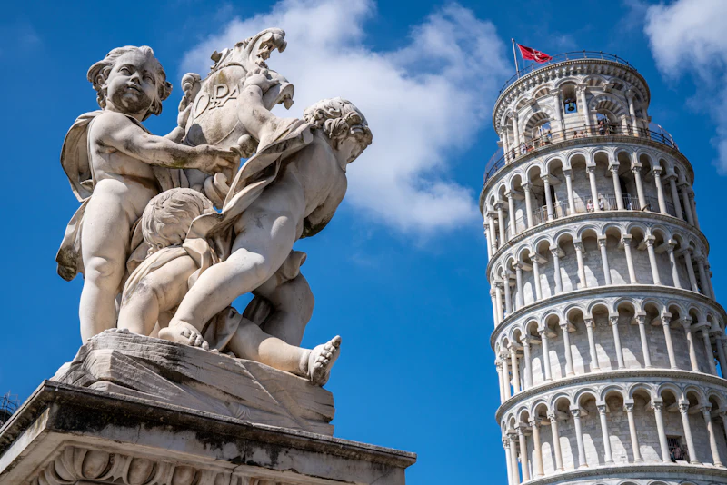 Δείτε τον παγκοσμίου φήμης Κεκλιμένο Πύργο της Πίζας και θαυμάστε το στρογγυλό Βαπτιστήριο που περιβάλλεται από τις μοναδικές κιονοστοιχίες του και το "Camposanto", αρχικά ένα νεκροταφείο, ένα εξαιρετικό τετράπλευρο μοναστήρι.