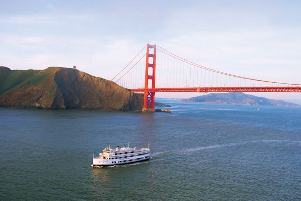 Καθώς ο DJ παίζει μουσική, πλεύσε κάτω από τα αστέρια. Δείτε τα βασικά αξιοθέατα του Σαν Φρανσίσκο, όπως τη Γέφυρα Γκόλντεν Γκέιτ και το Αλκατράζ.