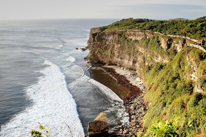 Επισκεφτείτε τον ναό Uluwatu σε έναν βράχο με θέα στον ωκεανό, κάντε μια βόλτα στους χώρους του ναού και τραβήξτε φωτογραφίες. Παρακολουθήστε το Kecak Fire Dance στο ηλιοβασίλεμα με προκαθορισμένα εισιτήρια για να αποφύγετε την αναμονή στην ουρά.