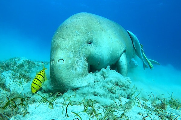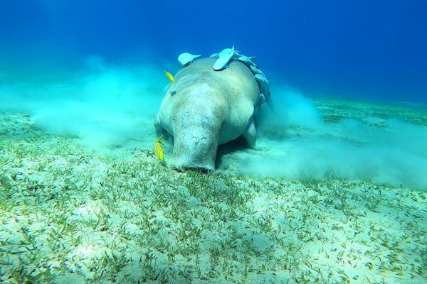 Από εκεί, θα πλεύσεις για 25 λεπτά προς το Marsa Mubarak Spot. Ο ξεναγός σας θα σας ενημερώσει σύντομα για τις τοπικές οδηγίες θαλάσσιας ζωής και ασφάλειας. Στη συνέχεια, βουτήξτε και ψάξτε για το αστέρι της παράστασης – το Dugong.