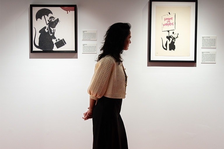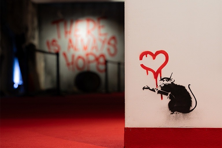 Visit Banksy Limitless in London to see 250 pieces by the famous street artist. You can view original works, large installations, digital pieces, photos, and sculptures.