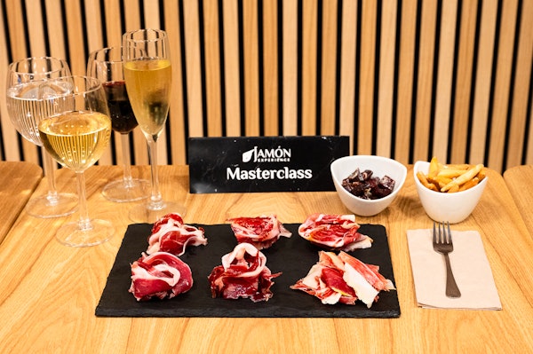 The experience takes place just steps from the Sagrada Familia and lasts 90 minutes. You’ll also learn how each jamón pairs with wine and cava. This masterclass is designed to give you a deeper understanding of Iberian ham.
