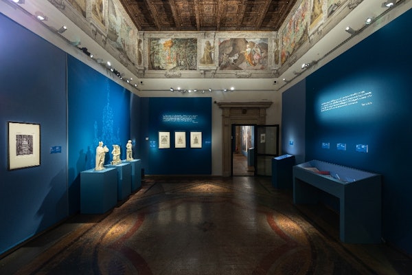 The exhibition reconstructs the artist’s two decisive stays in Bologna. This is organized into six sections and features more than fifty works, from marble sculptures and drawings to rare books and archival materials.
