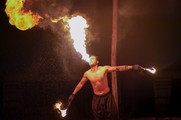 Sit down for a dance and fire show over a delicious BBQ dinner with meat and vegetarian options.