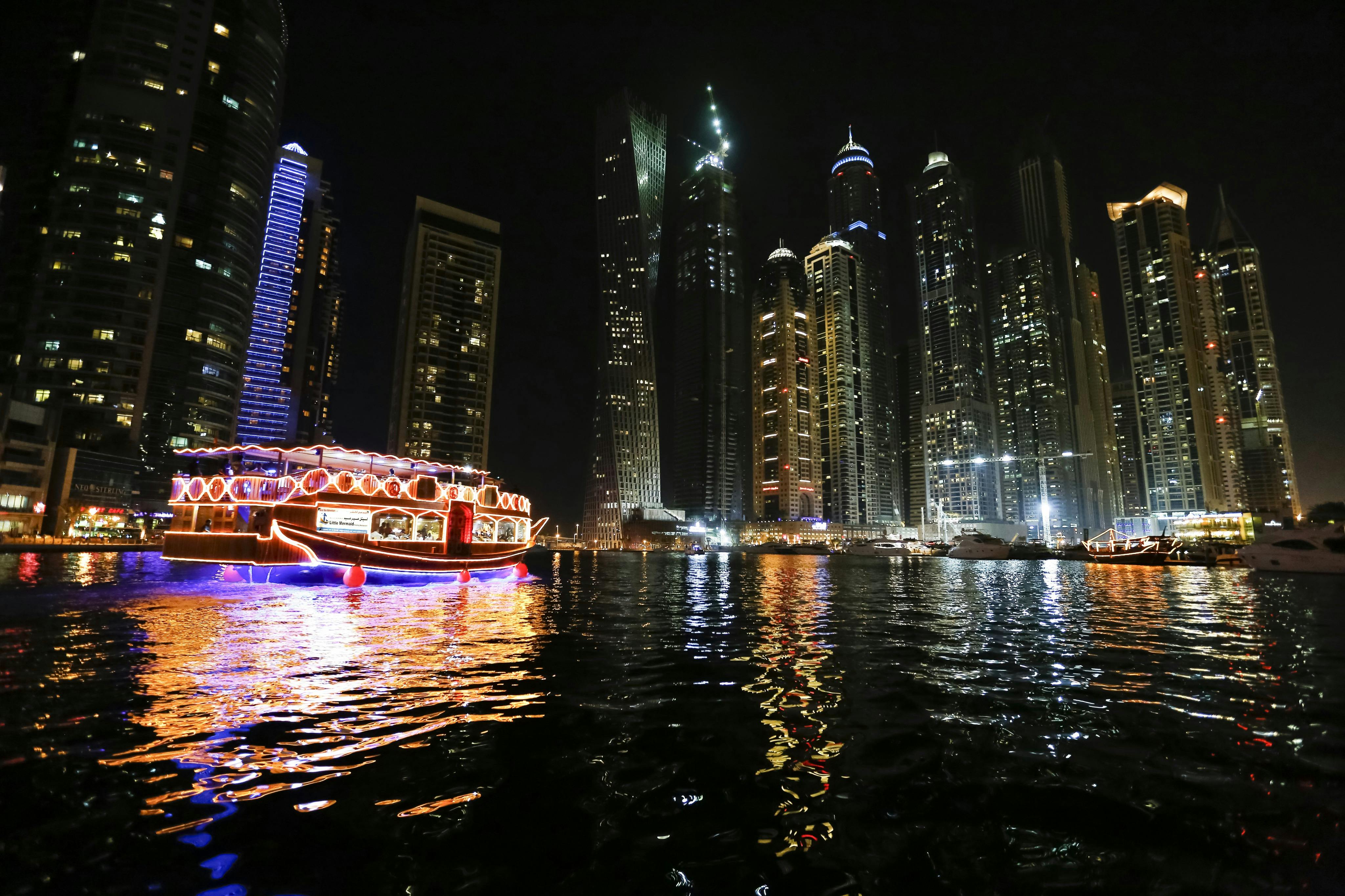 Dubai Canal: Luxury Dhow Cruise with La Perle Show Ticket