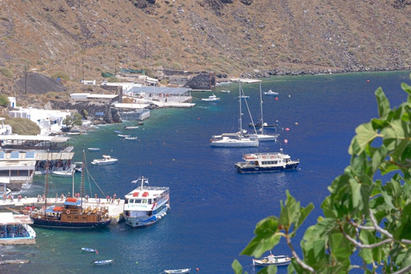 Return to the boat and continue on with the tour to the second lava islet, Palea Kameni, also known as the Hot Springs. Jump off the boat and dive into warm green, thermal waters. They're known for their relaxing and healing properties.