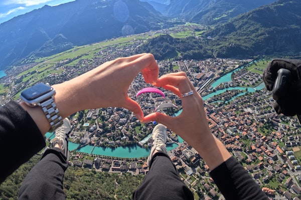 Start in Beatenberg, flying with a pilot for about 10-20 minutes. After that, land in Interlaken, specifically at Höhematte. This flight is a top choice for visitors to Interlaken.